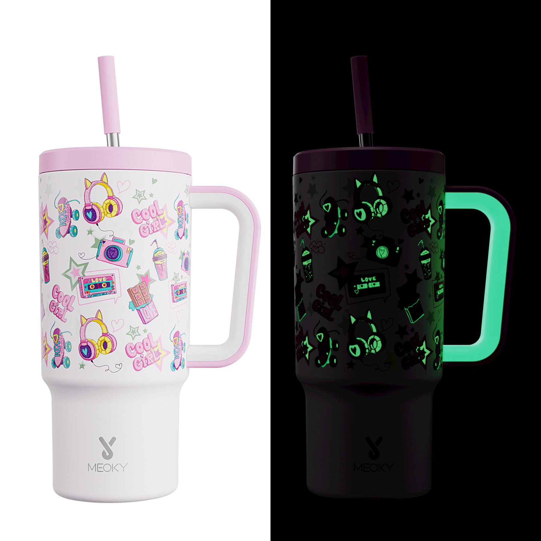24oz Tumbler With Straw Luminous Series-Pink Headphones